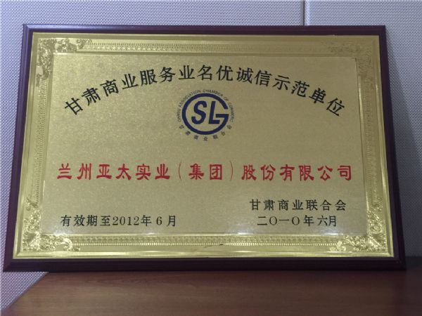 商业效劳业名优诚信示范单位